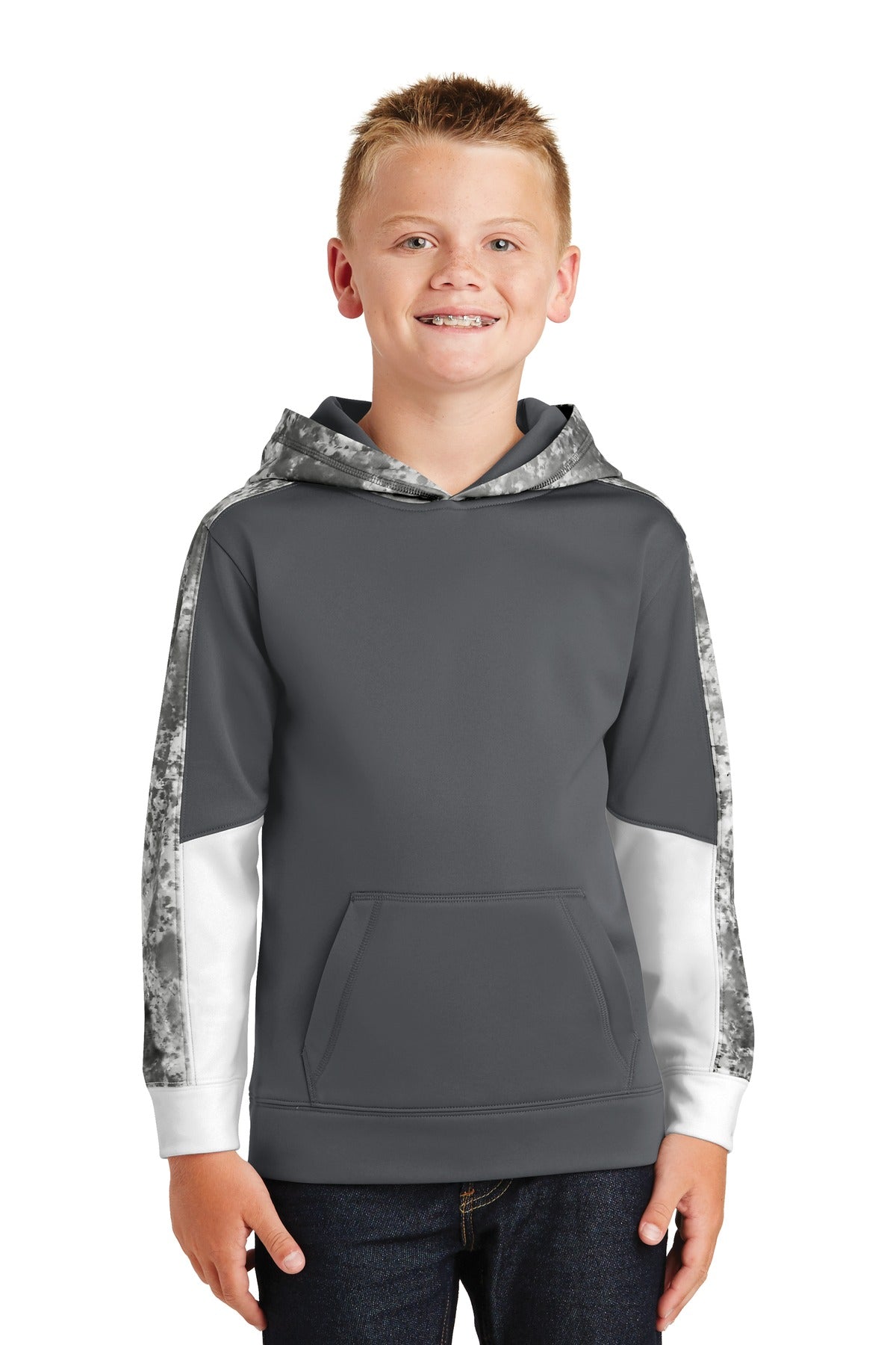 Sport-Tek® Youth Sport-Wick® CamoHex Fleece Hooded Pullover. YST240